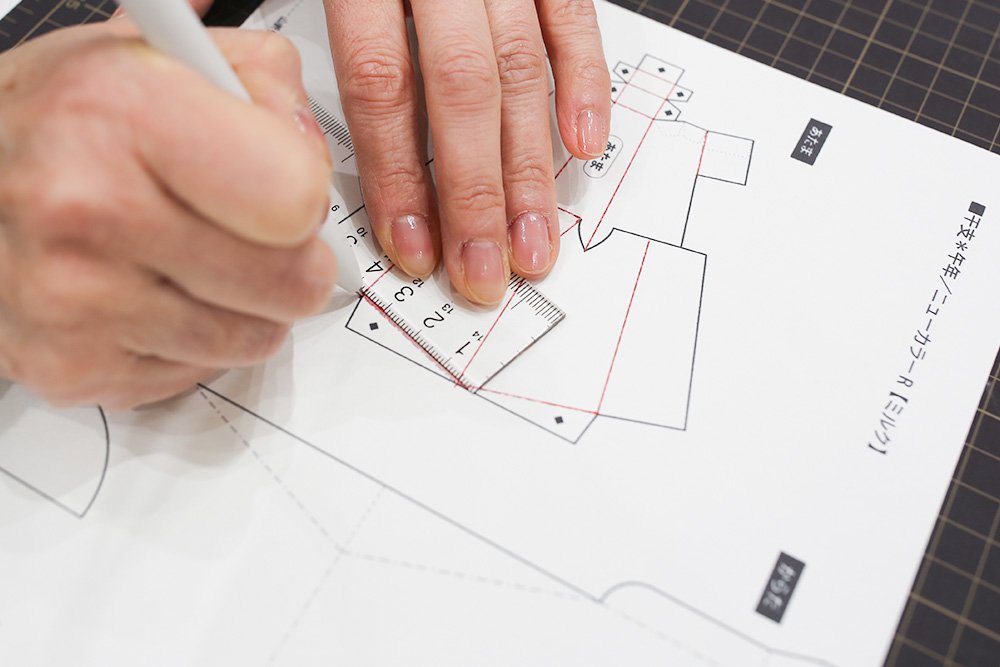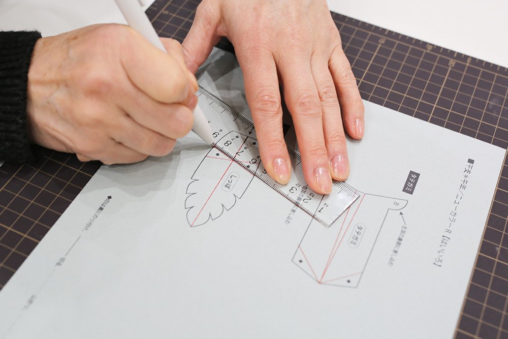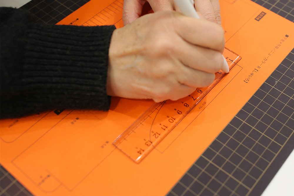 ★ポイント:ボールペンは折り線の判別がしやすいように赤色ボールペンを推奨。直線はなるべく定規を使いましょう。