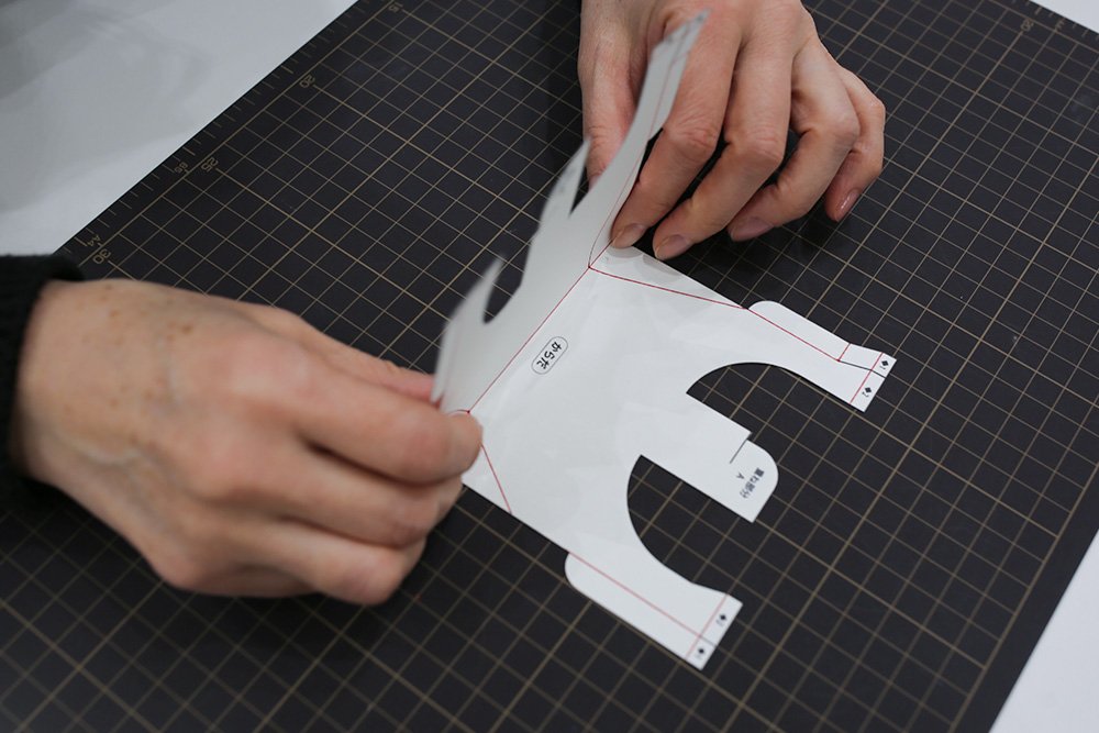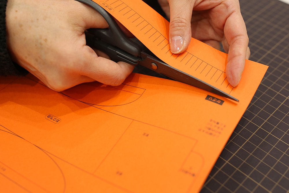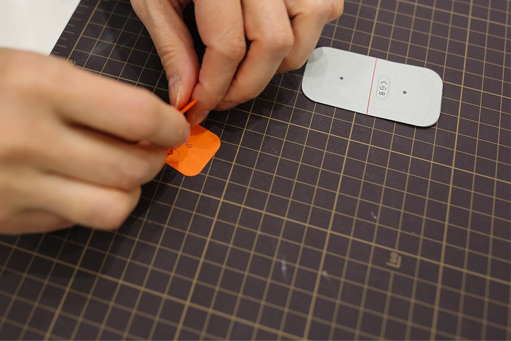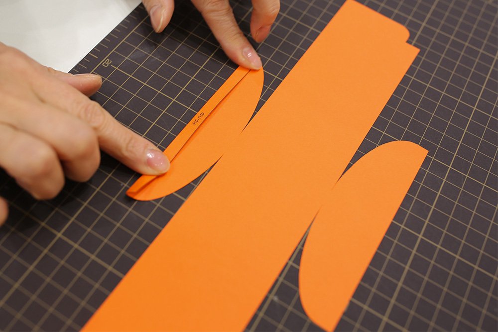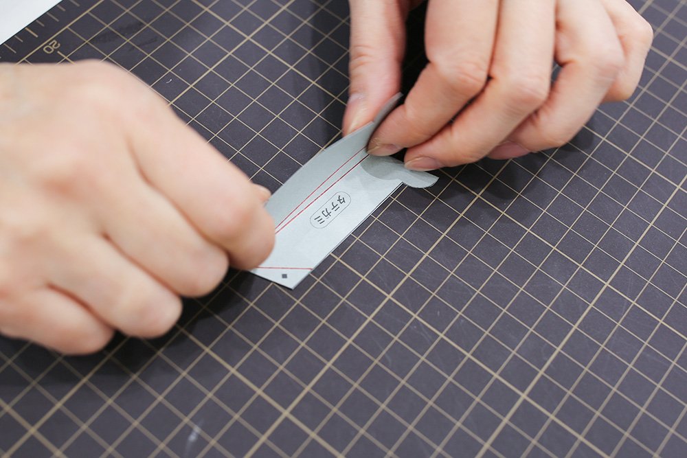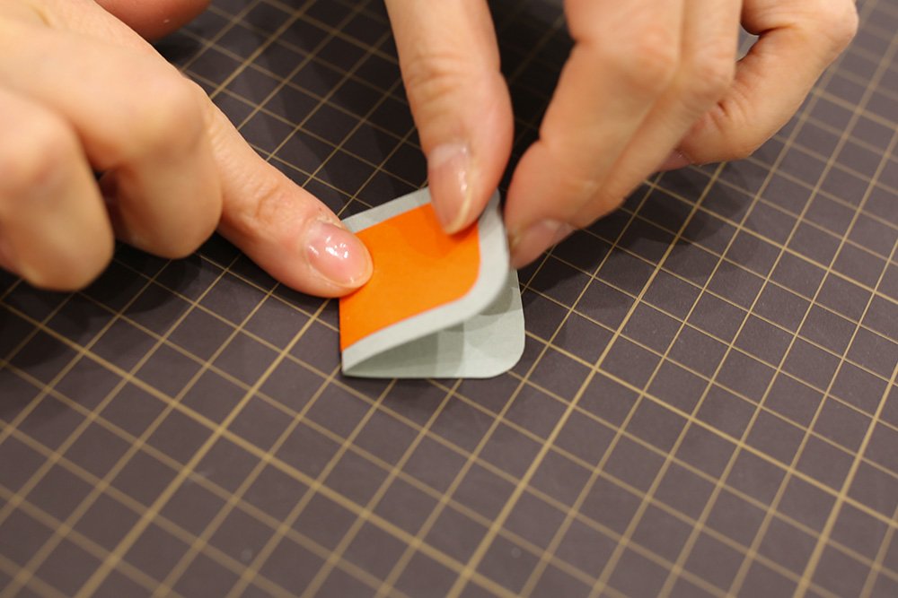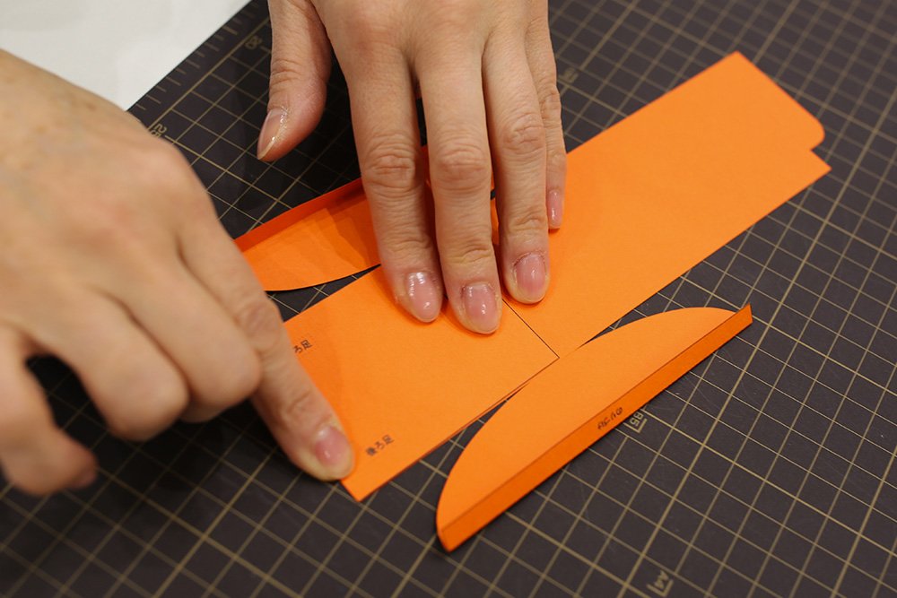 プリントされた折り線をボールペンなどでなぞって折り癖をつけます。
