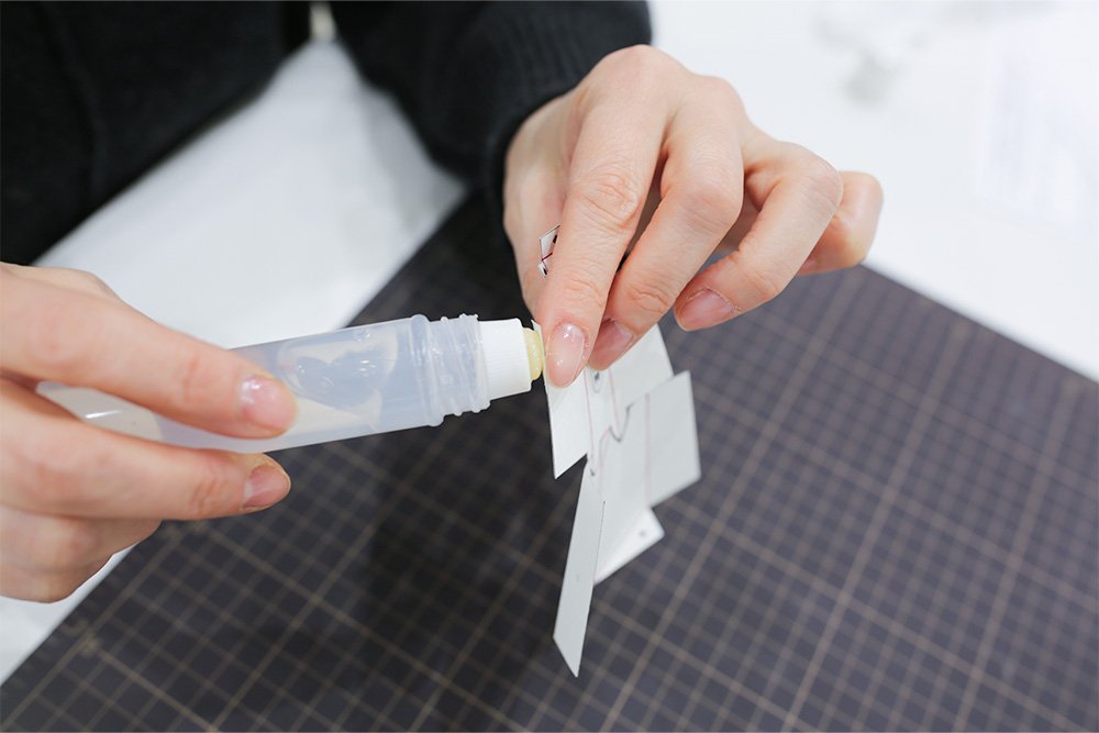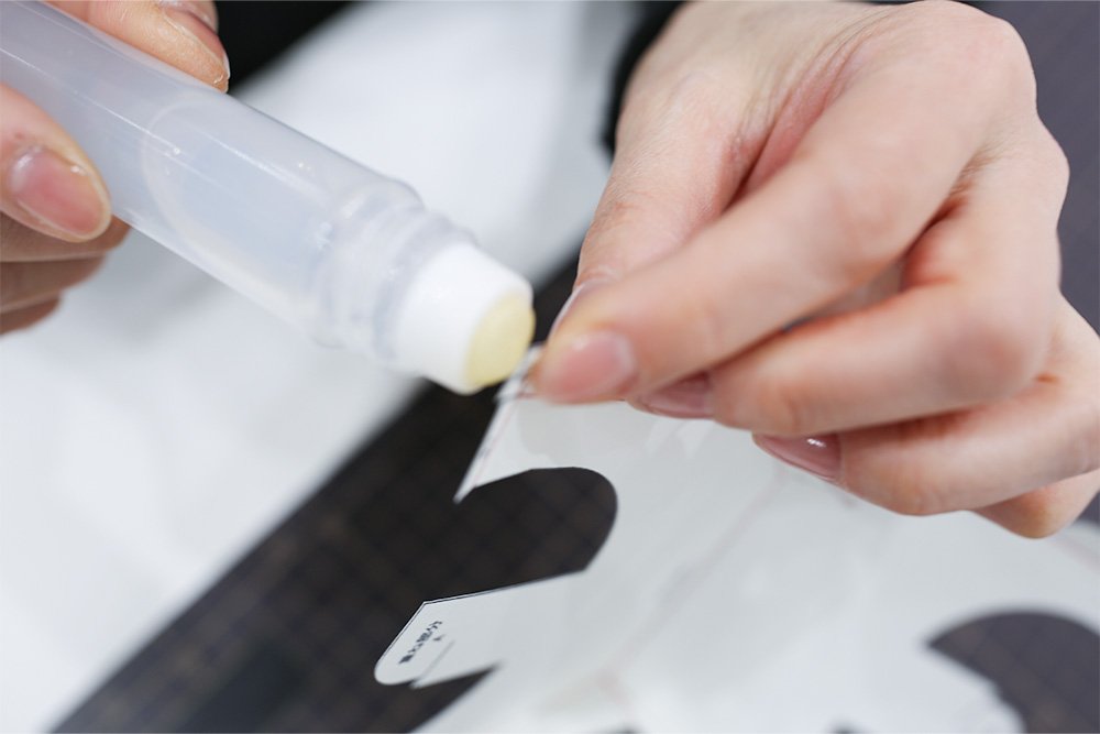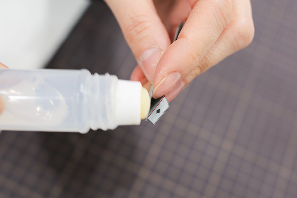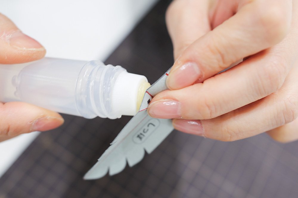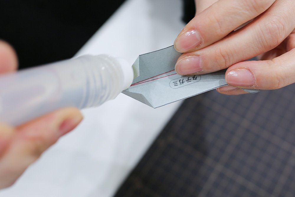 ★ポイント:のりが乾いて固定されるまで、指でしばらく押さえておきましょう。