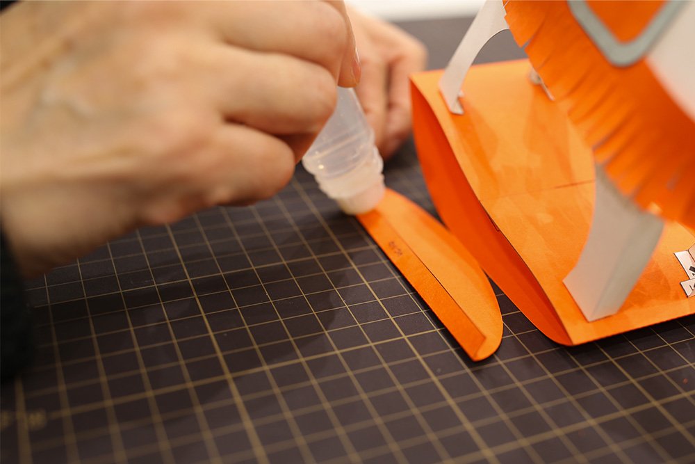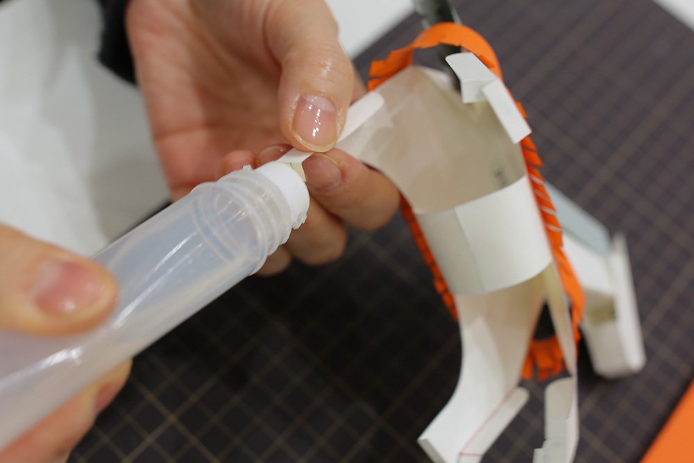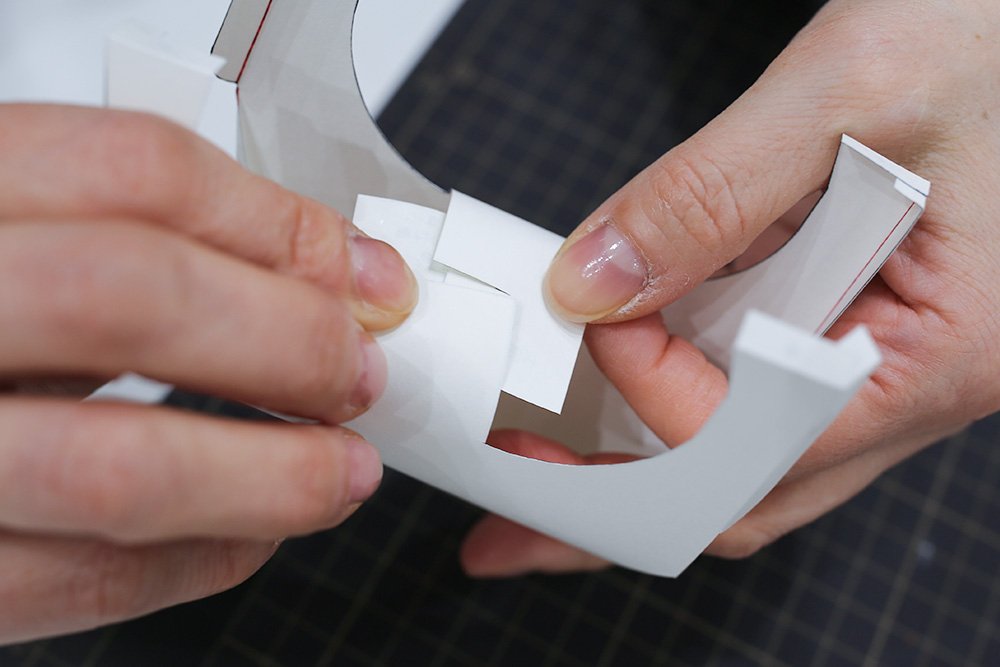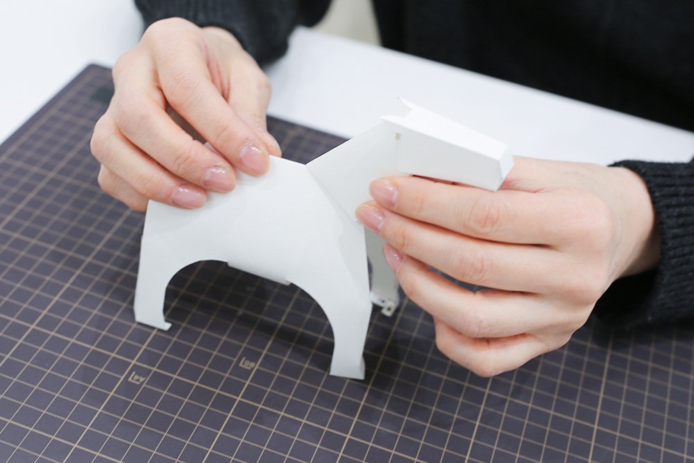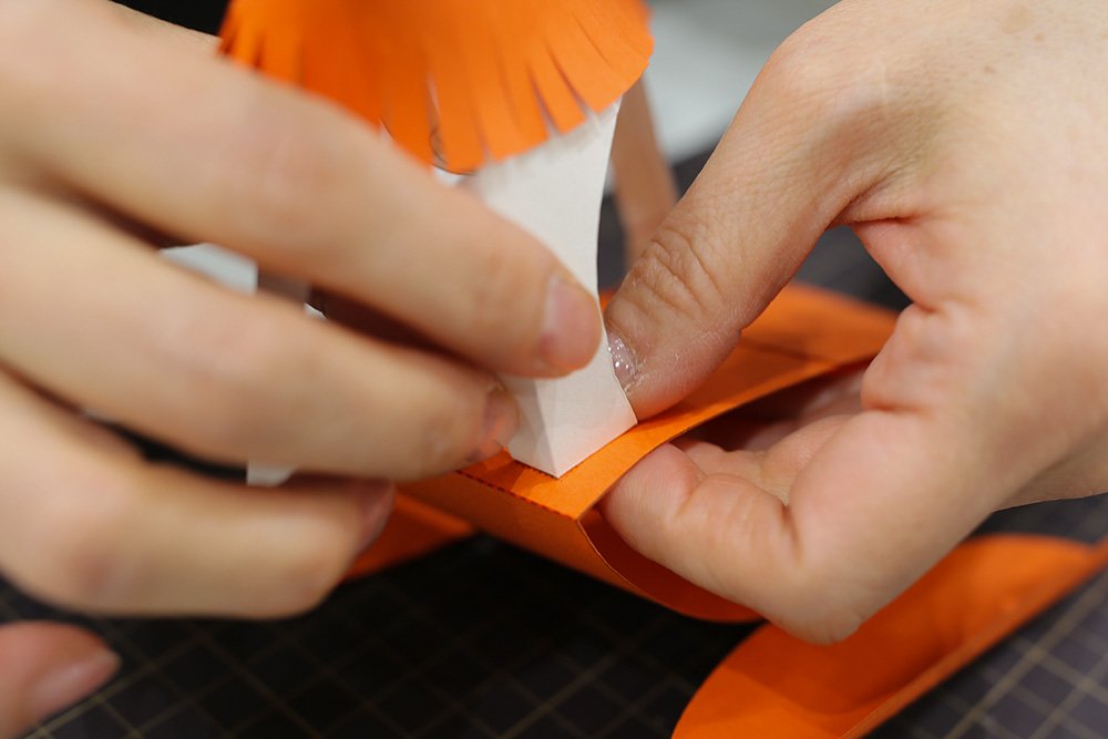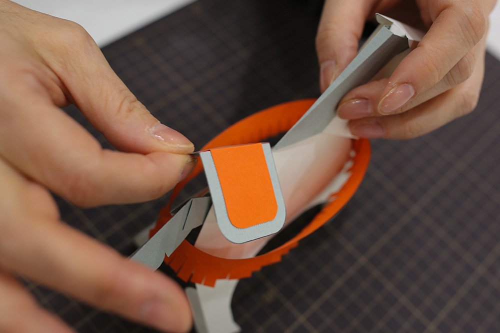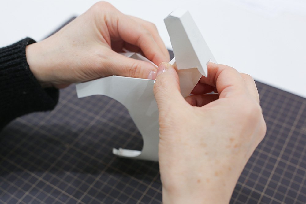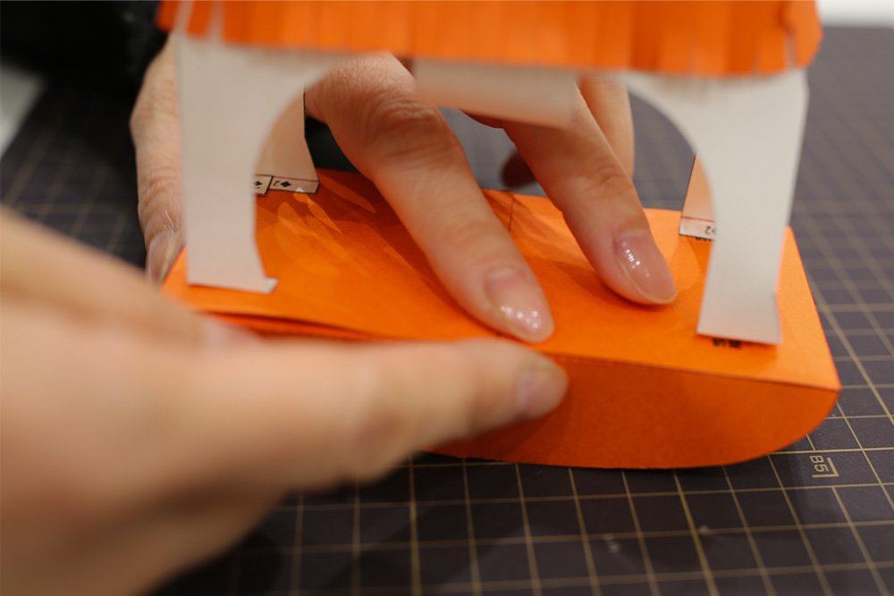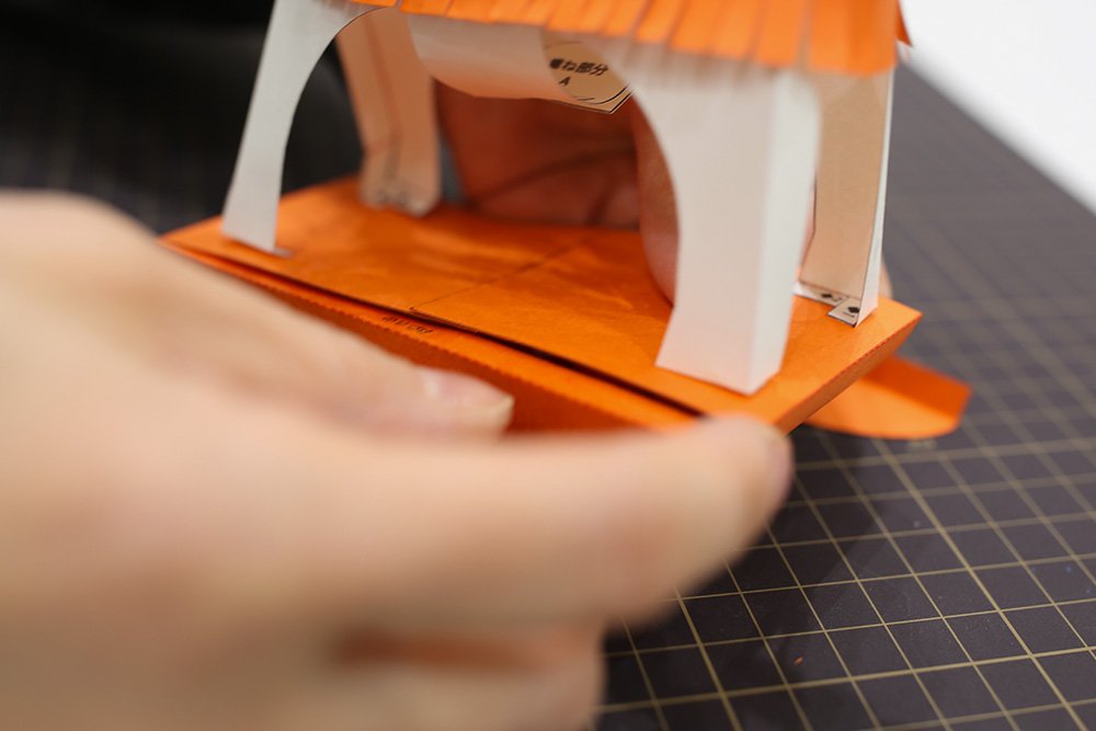最後にお立ち台の側面ののりしろを接着し、形を整えれば完成です!